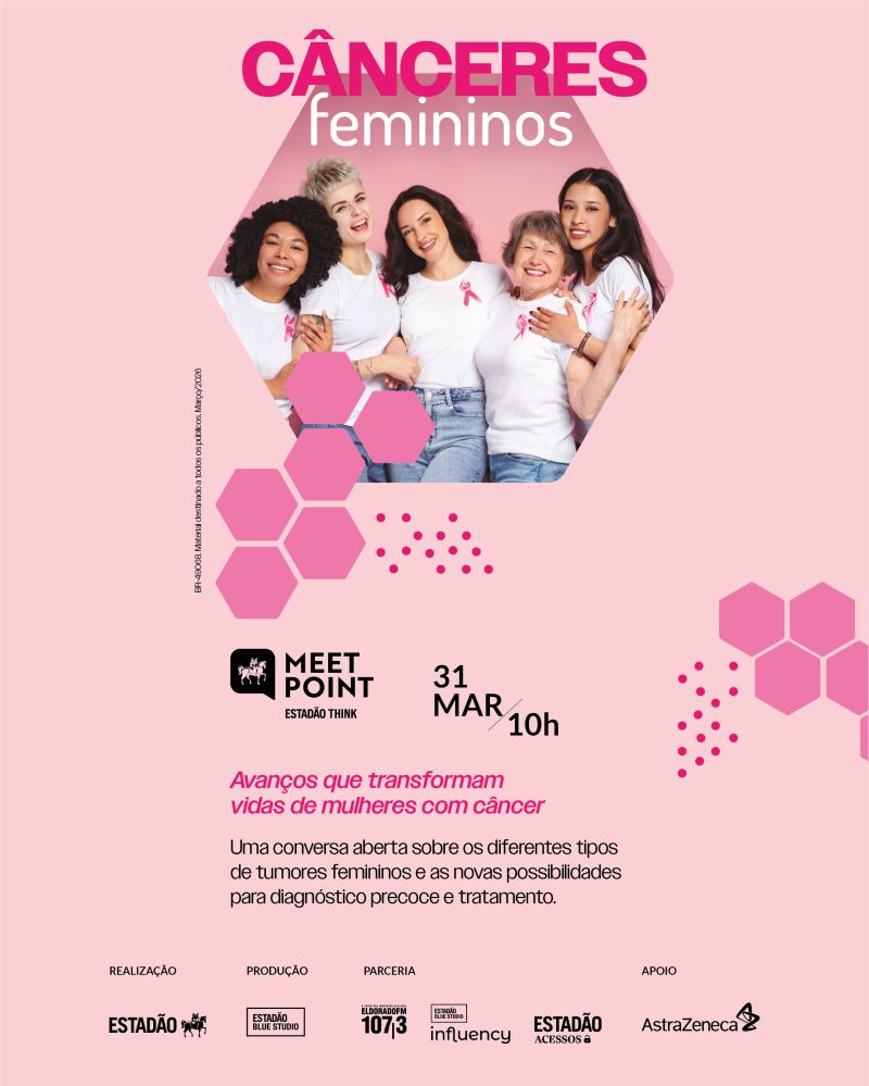 O Estadão, com apoio da AstraZeneca, realiza nesta terça-feira (31/03), às 10h, a live “Cânceres Femininos”, como parte do projeto Meet Point – Estadão Think.